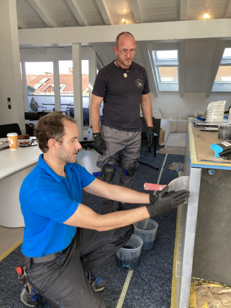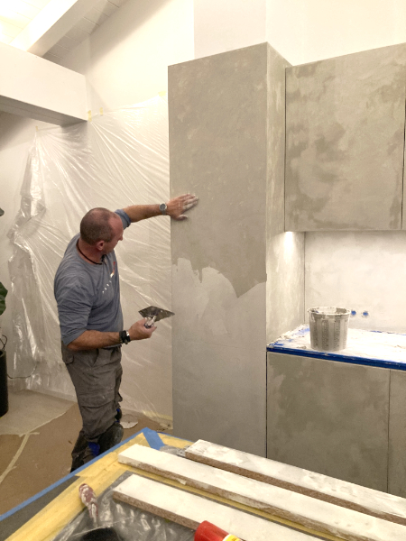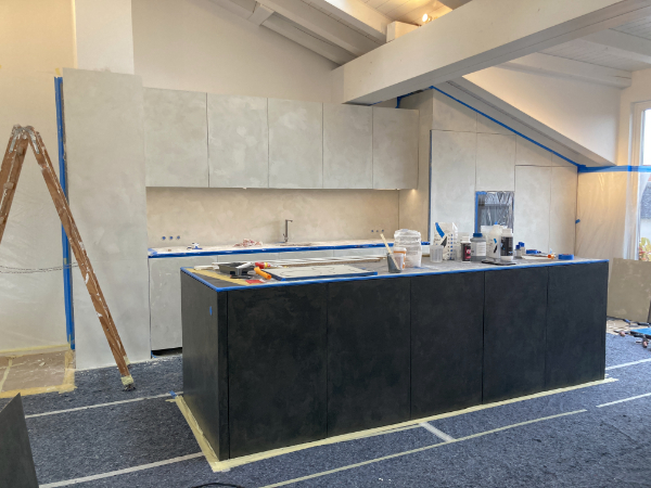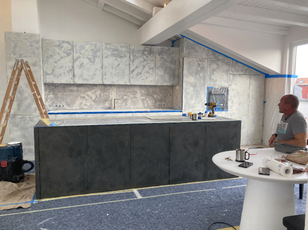 Wir finden, das Ergebnis unserer Oberflächenbeschichtung mit Mikrozement auf Melaninplatten ist einfach atemberaubend schön geworden!