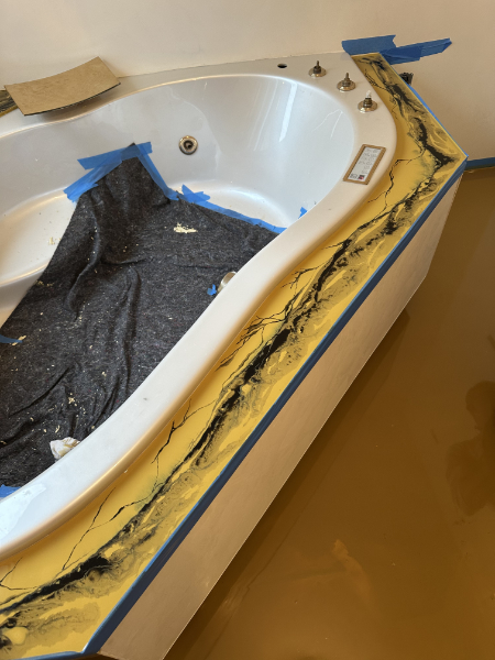 Badezimmer mit Wasserschaden und die Lösung: Epoxydharz zur Bodenrenovierung
