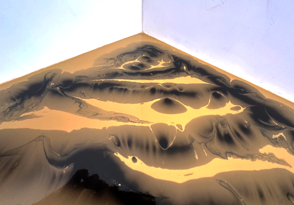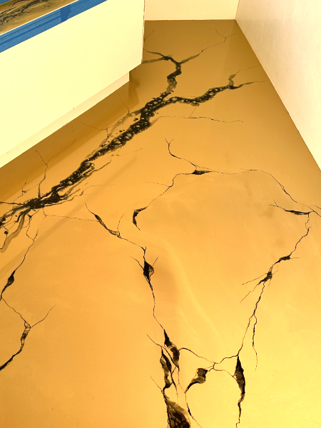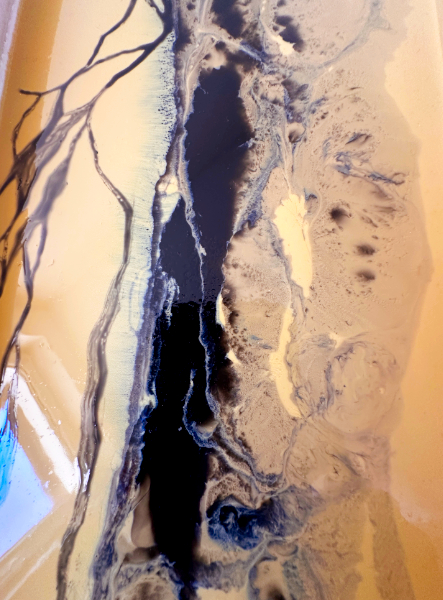 Für die Marmorierungen haben wir mit Epoxydharz von Hand die Linien des Gesteins fein nachgemalt, um den Effekt noch zu verstärken. Die Kombination der Bemalung mit den gegossenen schwarzen Gestaltungen ist wirklich einzigartig geworden und unser Kunde ist super glücklich!