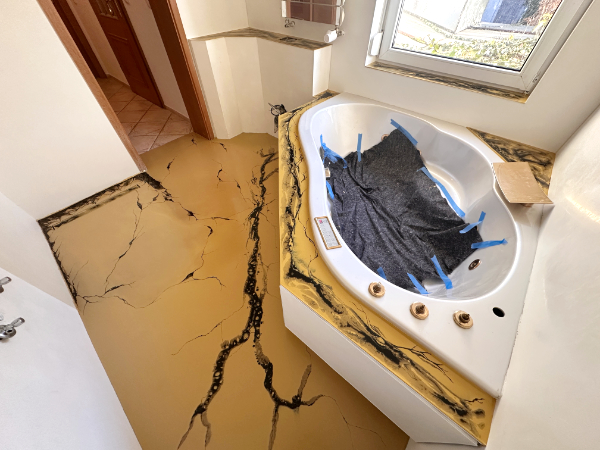 Künstlerische Badgestaltung nach Kundenwunsch in Gold-Ocker-Schwarz